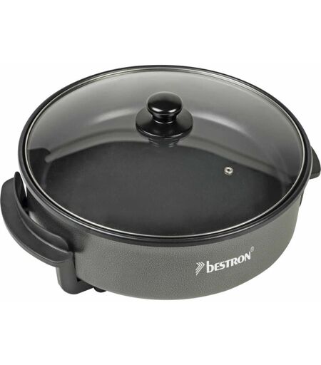 Poêle électrique AHP1500Z de Bestron Multifonction pour faire frire, cuire et maintenir au chaud. Parfaitement adaptée pour la préparation des pâtes, paëlla, chili con carne, boulettes de viande, etc., grâce à son bord extra profond. Caractéristiques principales : Puissance : 1500 W Thermostat réglable et amovible avec lampe témoin Couvercle en verre avec extraction des buées (compatible lave-vaisselle) Poignées résistantes à la chaleur Revêtement anti-adhésif, nul besoin d'huile ou de beurre Facile à nettoyer Pieds antidérapants Brochure colorée avec de nombreuses suggestions Label de qualité certifié GS, garantissant des normes de qualité et de sécurité très strictes Poids : 2,73 kg Couleur : gris ...
