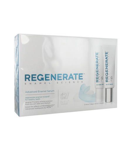 Regenerate Boosting Sérum Gel Activateur 16 ml + Sérum NR-5 16 ml va agir face à l'érosion de l'émail.Il faut savoir que 80 % des problèmes dentaires sont souvent liés à l'érosion de l'émail et aux attaques acides.L'émail dentaire est la partie visible de la dent. Il protège les différentes couches internes telles que la dentine et la pulpe. L'émail dentaire est très dur, c'est d'ailleurs la substance la plus solide de l'organisme. De couleur blanche, l'émail dentaire peut être altéré si une dent est cariée ou cassée. Dans ce cas, l'émail dentaire ne protège plus la dent. Ce processus d'érosion est invisible et peut arriver à tout âge rendant les dents plus vulnérables.Regenerate est la seule formule qui favorise la régénération de l'émail et l'inversion du processus d'érosion, pour des dents saines et fortes. Il regénère l'émail en rétablissant sa teneur en minéraux avec un brossage régulier.La technologie NR-5 a été le résultat de 9 ans de recherche dentaire et d'une technologie brevetée.L'efficacité quotidienne du dentifrice est alors renforcée de 43 %. Il suffit pour cela d'appliquer ce sérum une fois par mois pendant 3 jours consécutifs. Chaque kit contient un sérum, un gel activateur, et des gouttières ajustables.3 minutes d'application pour chaque arcade dentaire sont nécessaires. ...