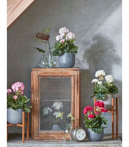 Égayez votre intérieur avec ce géranium de couleur crème de la collection Mica Decorations. La plante artificielle ne nécessite aucun entretien et vous permet d'en profiter toute l'année. Les fleurs ont été reproduites en détail et à différents stades de croissance : du bourgeon à la floraison. Cela donne un aspect très naturel. Ainsi, ça reste toujours beau ! Ce géranium est solidement ancré dans un pot de fleurs terracotta unique avec des pigments gris basalte. Placez-la telle quelle, ou utilisez le pot comme base solide pour un cache-pot décoratif. Les dimensions de cette plante artificielle sont H34 x Ø20 cm. ...