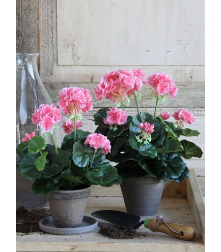 Égayez votre intérieur avec ce géranium de couleur pêche de la collection Mica Decorations. La plante artificielle ne nécessite aucun entretien et vous permet d'en profiter toute l'année. Les pétales sont reproduits en détail avec un beau dégradé de couleurs. Les fleurs ont été reproduites à différents stades de croissance : du bourgeon à la floraison. Cela donne un aspect très naturel qui reste joli ! Ce géranium est solidement ancré dans un pot de fleurs terracotta unique avec des pigments gris basalte. Placez-la telle quelle, ou utilisez le pot comme base solide pour un cache-pot décoratif. Les dimensions de cette plante artificielle sont H34 x Ø20 cm. ...