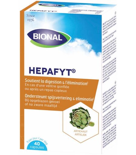 Complément alimentaire à utiliser dans le cadre d'une alimentation variée, équilibrée et d'un mode de vie sain.Hepafyt® est une synergie naturelle *d’artichaut, chardon Marie et curcuma, qui favorisent le métabolisme et l’élimination. **l’extrait d’artichaut dans Hepafyt® stimule la digestion et est à utiliser en cas de sensation de ballonnement ou après un repas lourd.IngrédientsHuile de soja ; gélatine ; extrait d’artichaut (14,5%) ; extrait de chardon Marie (11%) ; extrait de curcuma (7%) ; gélifiant : glycérol ; émulsifiant : lécithine de soja ; agent de charge : sorbitol ; stabilisants : carbonate de calcium, dioxyde de silicium ; extrait de poivrier noir (0,35%) ; colorants : chlorophylle.Données nutritionnellesComposition pour 3 capsules Cynara scolymus 600 mgSilybum marianum 450 mgCurcuma longa 300 mgPiper nigrum 15 mgConseils d'utilisations2 à 3 fois par jour 1 capsule avant le repas. A prendre avec un peu d’eau. Après un repas lourd : 1 capsule.Précautions d'emploiConserver dans un endroit sec et à l’abri de la lumière. Tenir hors de portée des jeunes enfants. Ne pas dépasser la dose recommandée. Un complément alimentaire ne doit pas se substituer à une alimentation variée et à un mode de vie sain. ...