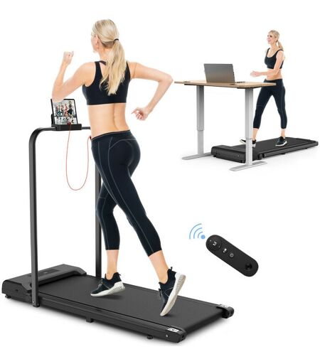 Bigzzia - 2 en 1 Tapis de marche Pliable Tapis de Course Roulant électrique - 1-10 Km/h Vitesse Réglable - Avec accoudoir et Écran lcd Noir