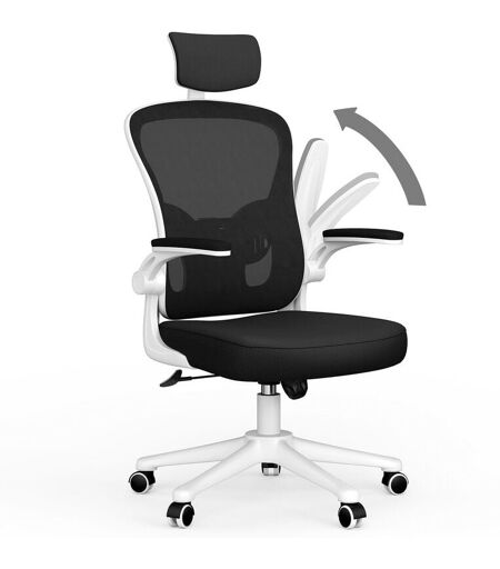 Bigzzia - Fauteuil de Bureau Ergonomique Siège-Fauteuil avec 2D Accoudoirs, Hauteur Appui-tête Soutien Lombaire Dossier Règalable - Noir et Blanc