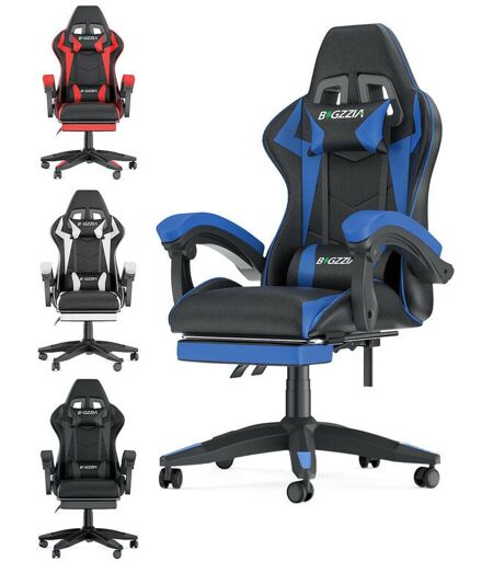 Bigzzia - Fauteuil gamer ergonomique Fauteuil de Bureau - Avec appui-tête, Support lombaire et Repose-pieds - Hauteur Réglable - Noir et Bleu