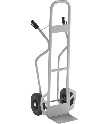 Diable professionnel NST250, force 350 kg, pneumatiques 260 x 85 mm. Produit livré = monté. Force = 350 kg. Largeur bavette = 285 mm. Profondeur bavette = 240 mm. Bandages = pneumatiques. Diamètre roues = 260 mm. Roulement = roulement à rouleaux. Largeur roues = 85 mm. Matériau = acier. Coloris = gris. Surface = peint époxy. Hauteur = 1376 mm. Largeur = 505 mm. Profondeur = 500 mm. Poids = 15.8 kg. Hauteur de chargement = 1370 mm. Largeur plateau = 285 mm. Longueur plateau = 240 mm. Type de produit = diables soudés. Poignées sécurité en caoutchouc. Roues protégées. Usage polyvalent. Diable à bavette fixe. ...