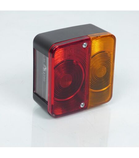 Feu arrière droit ou gauche 12V pour remorque neuf en plastique équipée d'un cabochon rouge et orange et de 2 vis de fixation. - Largeur totale 95mm - Hauteur totale 100mm - Épaisseur totale 48mm - Entre axe fixation 54mm Ce feu arrière fait aussi office d'éclairage de plaque d'immatriculation. Vendu à l'unité. Vendu sans ampoule (prévu pour être équipé d'une ampoule BAY15d et d'une ampoule BA15s). Livré conforme à la photo. ...