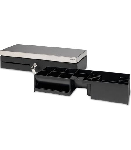 Caisse à couvercle rabattable, SAFESCAN SD-4617S, 6 compartiments pour billets, 8 pour pièces de monnaie. Produit livré = monté. Hauteur = 100 mm. Largeur = 460 mm. Profondeur = 170 mm. Verrouillage = sans verrouillage. Coloris = noir, argent. Matériau = acier. Modèle de compartiments = 8 compartiments pour pièces, 6 pour billets. Type de produit = accessoires pour appareils de test/comptage. Design robuste en métal. Testée pour au moins 1 million d'ouvertures. 6 compartiments pour billets et 8 pour pièces de monnaie. Compatible avec caisses enregistreuses RJ12 (12 V / 24 V). Certifiée CE. Cette caisse est spécialement conçue pour les points de vente de petite taille avec son design compact et couvercle rabattable. Couvercle métallique strié, ouverture électrique ou, optionnellement, par clé. Compartimentation réglable et amovible. Une fente séparée permet de garder les grands billets et les documents importants à l'abri des regards. Blocage sur deux positions (veille et ouverte). ...