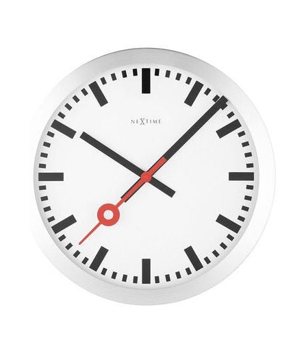 L'horloge murale NeXtime Station est une favorite parmi de nombreux amateurs d'horloges. Cette horloge allie un design bien connu et traditionnel au style NeXtime. L'horloge a un bord en aluminium avec un cadran blanc. Les bandes noires indiquent l'heure. La trotteuse rouge ajourée tourne progressivement autour de l'horloge, ce qui rend l'horloge silencieuse. ...