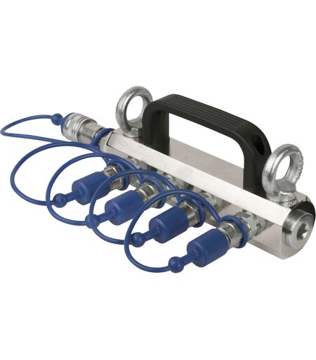 Connexion rapide et sécurisée, Système fermé, Économie de CO2, Combine plusieurs bouteilles et tuyaux dans une seule installation fermée, Le système Showtec CO2 Q-Lock est une gamme complète de produits permettant de créer un moyen rapide et sûr de construire toutes sortes d'installations au CO2. Il peut être appliqué aussi bien pour des installations fixes que pour des installations en location. Les produits Q-Lock sont tous équipés de raccords rapides mâles et femelles. Ils sont équipés de vannes de contre-pression pour garantir un système fermé et sûr à tout moment. La gamme Q-Lock de CO2 se compose de tuyaux, de séparateurs, de combinateurs, d'un distributeur et de divers adaptateurs. Avec les séparateurs et les combinateurs, il est possible d'intégrer plusieurs tireurs, des jets de glace FX ou plusieurs bouteilles dans un seul système. Les adaptateurs sont utilisés sur le pistolet à glace CO2 Showtec, les jets de glace FX ou les tuyaux avec filetage pour les adapter à toutes les applications Q-Lock.Note: Si vous utilisez des produits Q-Lock, assurez-vous toujours que vos pistolets à glace et vos jets de glace sont préparés avec des adaptateurs CO2 3/8 Q-Lock femelle.Le distributeur 4 voies Q-Lock permet de connecter 4 bouteilles dans une installation CO2. Cela vous aide à donner suffisamment de puissance et de durée au CO2 pour de grandes installations comportant plusieurs CO2 Ice Gun ou FX Ice Jets.Données techniques: Longueur (mm): 110 mm, Hauteur (mm): 100 mm, Largueur (mm): 290 mm, Connexion Gaz: Quick-Lock, Type de Gaz: CO2 ...