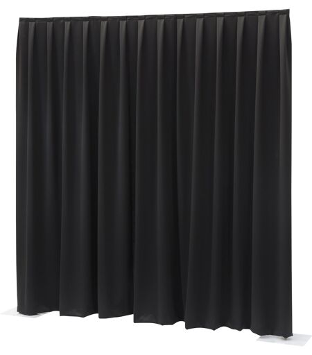 Ignifuge, Lavable, Tissu lourd, Absorbe la plupart de la lumière, Compatible avec les systèmes Pipe & Drape, Vous pouvez louer et acheter toutes sortes de systèmes de tuyaux et de rideaux, mais il n'existe aucun système aussi polyvalent et facile à utiliser que les tuyaux et rideaux Wentex. Grâce à de pures innovations, notre système de tuyaux et rideaux est beaucoup plus facile à déplacer que tout autre système sur le marché. Il est également très décoratif. Tout cela en fait le choix idéal pour les théâtres, les événements, les locaux commerciaux, les expositions et bien d'autres encore.Système révolutionnaire de raccords à 4 voiesSi vous avez déjà utilisé un système de tuyaux et de rideaux, vous connaissez probablement les défauts: par exemple, un support de rideau télescopique qui se détache, des rideaux suspendus irréguliers ou un montage maladroit.Le connecteur à 4 voies révolutionnaire et breveté, avec son système autolock, fait de ces incidents une chose du passé. Ce système garantit des connexions solides entre les montants et les supports de rideaux tout en permettant de les ajuster dans toutes les directions possibles et imaginables. Wentex Pipes & Drapes va encore plus loin. Un autre avantage est que les quatre ouvertures des raccords ont une taille universelle de 16 mm. Cela vous permet de monter une caméra, un haut-parleur ou une lampe. Grâce à un adaptateur, vous pouvez également relier le connecteur à 4 voies à tous les systèmes de tubes et rideaux à montants ronds.Autres avantagesVous découvrirez des avantages supplémentaires en utilisant les tuyaux et rideaux Wentex. Nos montants télescopiques en aluminium renforcé peuvent être assemblés jusqu'à 6 mètres sans avoir besoin d'échelle, et leurs têtes de verrouillage garantissent une connexion facile et robuste. De plus, nos plaques de base aux coins arrondis sont renforcées pour supporter un poids supplémentaire.Les supports de draps renforcés peuvent supporter un poids de 25 kg et peuvent être réglés jusqu'à une longueur de 3 mètres. Le système de velcro garantit que les rideaux sont suspendus de manière uniforme et droite.Nous proposons une large gamme de tissus différents qui peuvent être utilisés pour les systèmes de tubes et de draps. Chaque type de tissu a ses propres spécifications et applications qui sont expliquées dans l'aperçu ci-dessous.Satin moyennement brillant.Le satin moyennement brillant est un tissu léger. Son poids est de 165 grammes/m2. En raison de sa légèreté, il est facile à manipuler et plus rentable. Les rideaux ont une apparence un peu brillante. Les rideaux Medium Gloss Satin peuvent être lavés et sont ignifugés conformément à la norme DIN 4102-B1 (IFR). Ils sont fabriqués en PES FR à 100 %. En raison de la légèreté du tissu, ils ne bloquent pas la lumière à 100% pour ce type d'applications, vous pouvez utiliser la série Dimout.Molton CSMolton CS est la norme pour les vêtements de scène et est fabriqué dans le même tissu que les décors. Molton CS est... ...