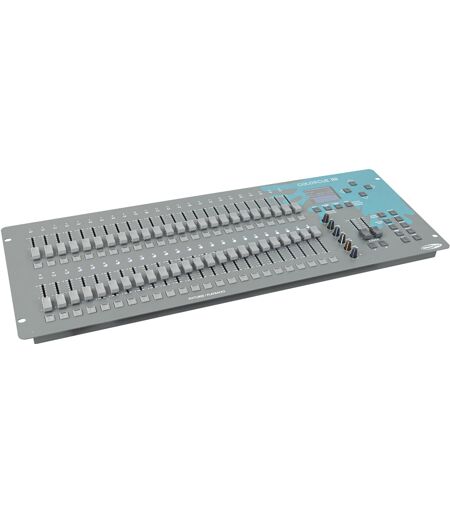 Contrôleur DMX intelligent à 48 faders, Convient pour 3 à 6 LEDs de couleur, 48 couleurs utilisateur, 48 courses-poursuites d'utilisateurs avec jusqu'à 99 étapes, Mode manuel, mode automatique et mode contrôlé par le son, Contrôle des gradateurs et des stroboscopes., La gamme ColorCue de Showtec comprend des contrôleurs LED à 6 couleurs pour un contrôle intuitif et intelligent, adapté à toutes les configurations. Leurs boutons rotatifs à 6 couleurs vous permettent d’émettre facilement jusqu’à 6 couleurs (RGB à RGBWA-UV). Il n’est plus nécessaire d’assigner chaque couleur à un fader dédié. Plusieurs couleurs et poursuites fixes ou personnalisées peuvent être déclenchées et ajustées au moyen de claviers dédiés. Les poursuites sont programmables et peuvent comprendre jusqu’à 99 étapes. La gamme ColorCue a été conçue pour vous permettre de tout préparer en un rien de temps.Il existe plusieurs contrôleurs ColorCue différents pour contrôler un seul groupe d’appareils RGB(WA-UV) et jusqu’à 48 groupes d’appareils sur 512 canaux, ainsi que pour commander 48 poursuites/couleurs au maximum. Les ColorCue 3 et 4 sont même équipés d’un écran LCD pour les opérateurs les plus exigeants.Chaque contrôleur ColorCue offre de multiples fonctionnalités et dispose d’un flightcase dédié en option pour un transport sûr et facile. Profitez dès maintenant de conseils gratuits et d’une offre de choix ou découvrez nos produits pour plus d’informations.Le Showtec ColorCue 4 est un contrôleur DMX intelligent à 48 faders pour LED qui permet de contrôler facilement 3 à 6 luminaires LED de couleur avec jusqu'à 288 canaux DMX, adapté à tous les lieux. Ses 6 encodeurs rotatifs permettent un contrôle rapide de différents moteurs de couleur, de 3 couleurs RGB à 6 couleurs RGBWA-UV. Le ColorCue 4 est livré avec un bouton de mémoire sous chaque fader pour un contrôle intelligent de vos couleurs, chenilles et paramètres utilisateur. Equipé de 2 faders maîtres intelligents et d'un écran LED intuitif, vous pouvez facilement contrôler 2 sections et fixer des fixations à l'un des 48 faders disponibles. Pour changer les couleurs et les effets en boucle, vous pouvez créer et lire 48 chases avec un maximum de 99 pas par chases. Le chases peut être contrôlé en mode manuel, automatique ou contrôlé par le son.Données techniques: Mode de Contrôle: Built-in Program / Sound / Static Dimmer, Canaux DMX: 288, Protocoles: DMX, Afficheur: LCD, Faders: 50, Mémoires: 1000, Alimentation: 12 V DC, Consommation d'Energie: 15 W, Connecteur Alimentation IN: Low Voltage DC plug, Connecteur DMX out: XLR 3P, Déclencheurs audio: 1, Longueur (mm): 720 mm, Largueur (mm): 265 mm, Hauteur (mm): 80 mm, Poids: 5.6 kg, Unité Rack: 6 U, Coffrage: Metal, Couleur: Gray / Neon Green ...