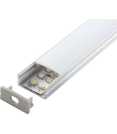 Profilé pour bande LED, Aluminium, 2 m de long, Y compris 2 caches: laiteuse et givrée, Y compris 4 embouts et 4 pinces de montage, Ce profilé de deux mètres de long en aluminium pour bandes LED est composé de quatre embouts, de trois supports et de deux caches, l’un blanc laiteux et l’autre d’aspect givré.Données techniques: Hauteur (mm): 12.8 mm, Largueur (mm): 23.5 mm, Longueur (m): 2 m, Couleur: Silver ...
