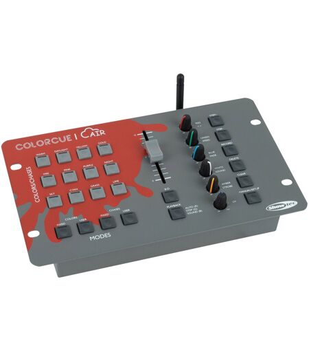 Console DMX LED intelligente à 1 fader avec DMX sans fil, Autonomie maximale de la batterie interne: 12 h en fonctionnement, Convient pour 3 à 6 LED couleur, 12 couleurs fixes et 12 couleurs utilisateur, 12 poursuites fixes et 12 poursuites utilisateur pouvant comprendre 99 étapes, Modes manuel, automatique et acoustique, La Showtec ColorCue 1 Air est une console LED DMX intelligente à 1 fader et 6 canaux, pour un contrôle sans fil de la sortie de lumière des projecteurs LED jusqu’à 6 couleurs (RGBWA-UV), qui conviendra à tous les lieux. Ses 6 potentiomètres vous permettent d’ajuster rapidement les lumières pour obtenir la couleur souhaitée, d’un RGB de 3 couleurs à un RGBWA-UV de 6 couleurs. Grâce à la ColorCue 1 Air, vous pourrez créer 12 couleurs prédéfinies et choisir entre 12 couleurs fixes. Vous pouvez créer 12 programmes (poursuites), chacun pouvant comprendre 99 étapes de changement de couleurs et d’effets en boucle. Les poursuites se contrôlent en mode manuel, automatique ou acoustique. Les capacités DMX sans fil et la batterie interne, d’une autonomie de 12 heures en fonctionnement, vous permettent d’éviter de faire courir des câbles jusqu’à la console: une solution idéale pour une configuration temporaire !Données techniques: Mode de Contrôle: Built-in Program / Manual / Sound / Static Dimmer, Canaux DMX: 6, Protocoles: DMX, Faders: 1, Mémoires: 1212, Alimentation: 9-12 V DC, Consommation d'Energie: 10 W, Connecteur Alimentation IN: Low Voltage DC plug, Connecteur DMX out: XLR 3P, Déclencheurs audio: 1, Longueur (mm): 258 mm, Largueur (mm): 150 mm, Hauteur (mm): 79 mm, Poids: 1.1 kg, Unité Rack: 3 U, Coffrage: Metal, Couleur: Gray / Red ...