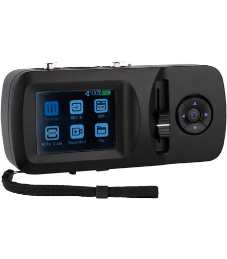 Permet d’effectuer des tests DMX, RDM, Art-Net et sACM, Enregistrement et lecture des signaux DMX à l’aide d’une carte SD amovible, Portable, alimenté par batterie, Contrôle intuitif avec écran tactile, fader et boutons, L’Assistant de Showtec est un outil multifonction permettant de vérifier les signaux DMX, Art-Net et sACN. Il vous permet à la fois de recevoir et de transmettre des signaux DMX, ce qui le rend idéal pour tester votre infrastructure et vos câbles. Vous pouvez également enregistrer et lire des signaux DMX à l’aide d’une carte SD amovible. L’Assistant de Showtec est un appareil robuste et complet qui vous permet également de vérifier les paramètres RDM de vos projecteurs, ainsi que la fonctionnalité de vos réseaux Art-Net et sACN.La navigation dans le menu et les paramètres se fait sans effort grâce à son écran tactile capacitif. Vous pouvez aussi le contrôler en utilisant le fader et les boutons. Lorsqu’elle est complètement chargée, la batterie interne Li-ion offre une autonomie allant jusqu’à 16 heures, et elle peut être rechargée par l’intermédiaire du port USB-C avec une alimentation de 5 V.Données techniques: Type: Lithium ion, Type Mémoire: SD-Card, Alimentation: 5 V DC, Alimentation par Ethernet (PoE): No, Consommation d'Energie: 5 W, Connecteur Alimentation IN: USB-C, Connecteur DMX: XLR 5P In/Out, Longueur (mm): 186 mm, Largueur (mm): 82 mm, Hauteur (mm): 56 mm, Poids: 0.5 kg, Classement IP: IP20 (indoor use only), Coffrage: ABS, Couleur: Black, Mode de Contrôle: Art-Net / DMX / RDM / sACN, Afficheur: LCD / Touch, Univers: 1 ...