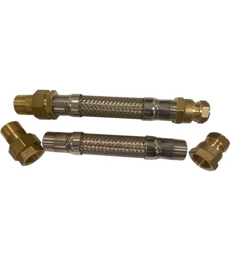 Set de raccordement pour surpresseur à une conduite d'eau 22 mm avec tuyaux flexibles blindés. Facilite le raccord de, par exemple, votre DAB Easybox (Mini 3) à votre conduite d'eau existante, avec le passage du raccord fileté vers le raccord à compression. * Convient à toutes les pompes de surpression avec un raccord fileté de 1 " * Convient à une conduite d'eau d'un diamètre de 22 mm Set composé des éléments suivants : * 2x compensateurs de tuyaux * 2X raccords 3 pièces * 2x raccords à compression vers cuivre à 22 mm ...