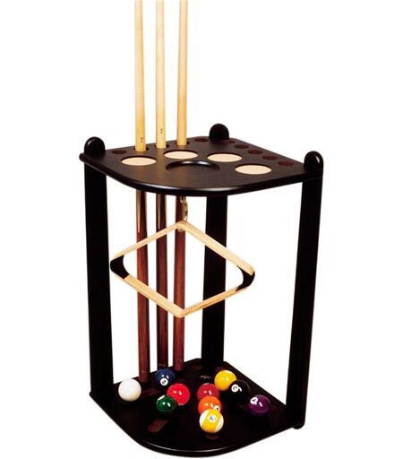 Ce luxueux casier à queues en bois (modèle de sol) est un modèle d'angle extrêmement pratique, qui vous permet de cacher joliment les queues dans un coin. Outre le rangement sûr et pratique de pas moins de 10 queues, vous pouvez également y ranger les boules et le triangle, et il y a des sous-verres en liège intégrés sur lesquels vous pouvez poser votre verre ! Hauteur : 68 cm. ...