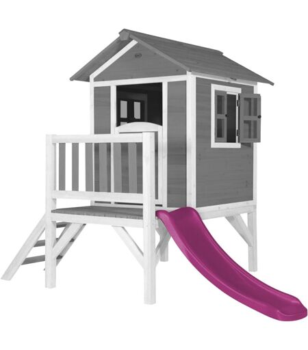 AXI Maison Enfant Beach Lodge xl en Gris avec Toboggan en Violet Maison de Jeux en Bois ffc pour Les Enfants Maisonnette / Cabane de Jeu pour Le Jardin