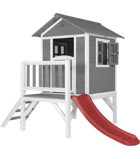 AXI Maison Enfant Beach Lodge xl en Gris avec Toboggan en Rouge Maison de Jeux en Bois ffc pour Les Enfants Maisonnette / Cabane de Jeu pour Le Jardin