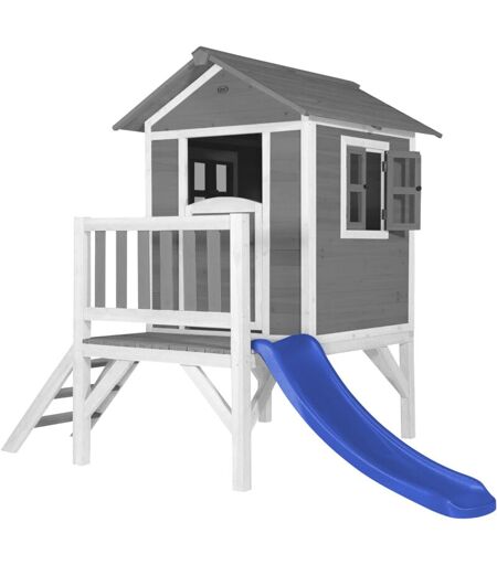 Maison Enfant Beach Lodge xl en Gris avec Toboggan en Bleu Maison de Jeux en Bois ffc pour les Enfants Maisonnette / Cabane en Bois - AXI