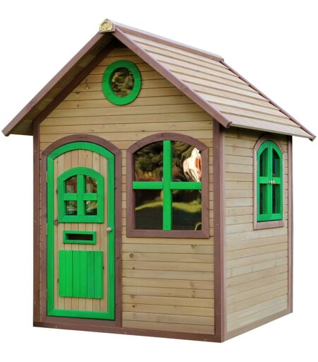 Julia Maison Enfant en Bois fsc Maison de Jeux pour l'extérieur / Jardin en marron & Vert Maisonnette / Cabane de Jeu avec des fenêtres - AXI