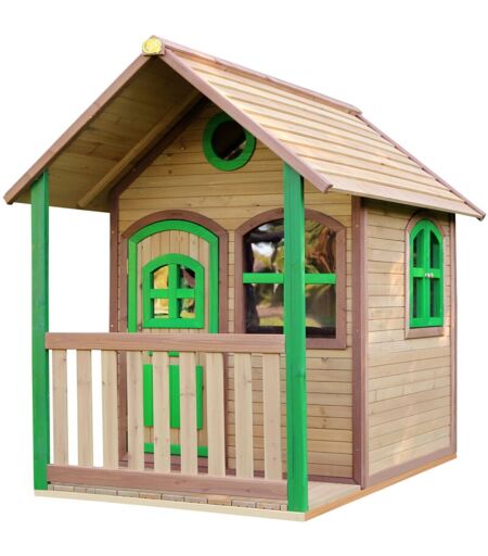 Alex Maison Enfant en Bois fsc Maison de Jeux pour l'extérieur / Jardin en marron & Vert Maisonnette / Cabane de Jeu avec des fenêtres & Véranda - AXI