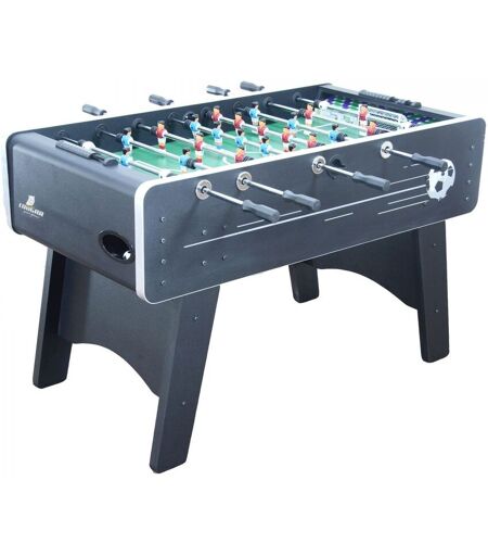 Le Babyfoot sportif Arena est ?quip? de barres t?lescopiques (qui ne ressortent pas) en acier massif chrom? (?16 mm), poign?es bois, sur roulement ? billes. Le Babyfoot sportif Arena est ?quip? de barres en acier massif chrom? (?16 mm), poign?es bois, sur roulement ? billes. La table est facile ? monter et sa structure en MDF est recouverte d'un stratifi? synth?tique noir et dur.. Barres en acier massif chrom? (?12 mm) t?lescopiques, qui ne ressortent pas de l'autre cot? du baby foot.. Le rebord des faces de la structure est en outre prot?g? par une baguette en aluminium.. Les amortisseurs en caoutchouc ?quipant les tiges rendent le jeu agr?able.. 26 joueurs en ABS. Les gardiens de but peuvent pivoter sur 360? et derri?re chaque cage se trouve un retour de balles incorpor?.. Inclus : 4 balles disponibles (diam : 36mm) dans 2 duret?s et designs.. Sortie de la balle de jeu de chaque c?t?, au niveau de la ligne m?diane.. Avec compteur de points.. Poids net: 77 kg. Garantie 24 mois ...