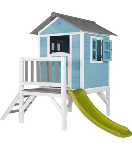 AXI Maison Enfant Beach Lodge xl en Bleu avec toboggan en Vert clair Maison de Jeux en bois ffc pour les enfants Maisonnette / Cabane de jeu pour le