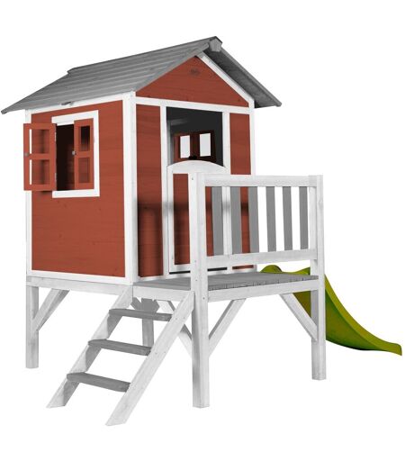 Axi Maisonnette Lodge Xl En Bois Rouge Toboggan Vert