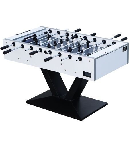 Le babyfoot Worldcup Premium Pro de Cougar porte bien son nom. C'est un mod?le de haute qualit? au design unique! Ce babyfoot moderne a une base en m?tal noir qui est ?quip?e d'ajusteurs de pieds r?glables pour que la table soit toujours stable et la surface de jeu horizontale. Les c?t?s sont ?pais de 38 mm avec une couche sup?rieure en HPL. Il y a 22 joueurs ? contrepoids lest?s , 11 noirs et 11 blancs, fix?s aux barres de jeu extra ?paisses et solides de ?15,8 mm. Les poign?es sont tr?s confortables dans les mains gr?ce ? la couche sp?ciale de TPU avec une adh?rence suppl?mentaire. Les roulements en nylon garantissent qu'ils peuvent ?tre lubrifi?s en douceur avec le lubrifiant. Les pare-chocs en gel de silice ?loignent les joueurs des murs afin qu'ils ne soient pas endommag?s, m?me ? grande vitesse. Le terrain de jeu mesure 120,2 x 68 cm. Le terrain n'a pas moins de 20 mm d'?paisseur et la couche sup?rieure en HPL avec des angles inclin?s emp?che la balle de s'arr?ter. Le strati ... ...