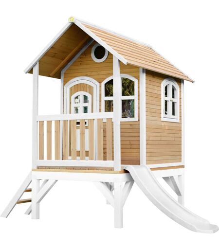 Tom Maison Enfant avec Toboggan Blanc Aire de Jeux pour l'extérieur en marron & Blanc Maisonnette / Cabane de Jeu en Bois fsc - AXI