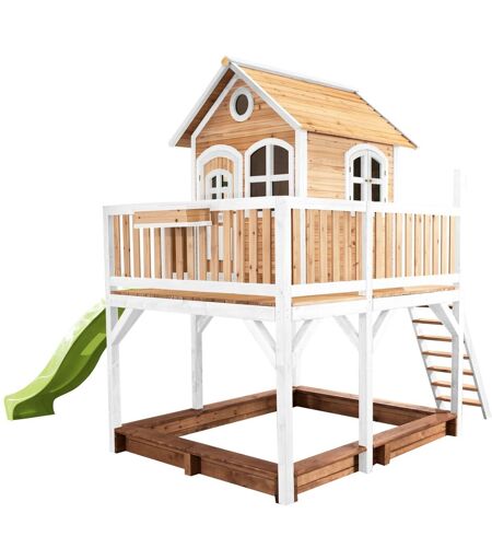 Axi Maisonnette Liam Brun Blanc Avec 1 Balancoire Et Toboggan Vert Citron Et Bac À Sable