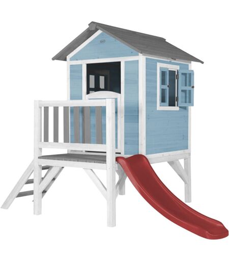 AXI Maison Enfant Beach Lodge xl en Bleu avec Toboggan en Rouge Maison de Jeux en Bois ffc pour Les Enfants Maisonnette / Cabane de Jeu pour Le Jardin
