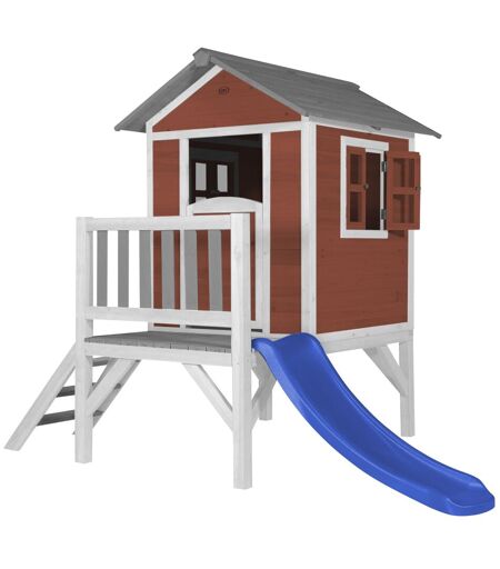Axi Maison Enfant Beach Lodge Xl En Rouge Avec Toboggan Bleu