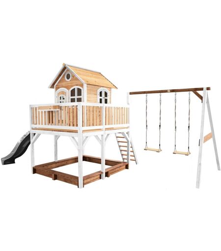 Axi Classic Liam Maisonnette Avec Balancoire Double Marron Blanc Toboggan Gris