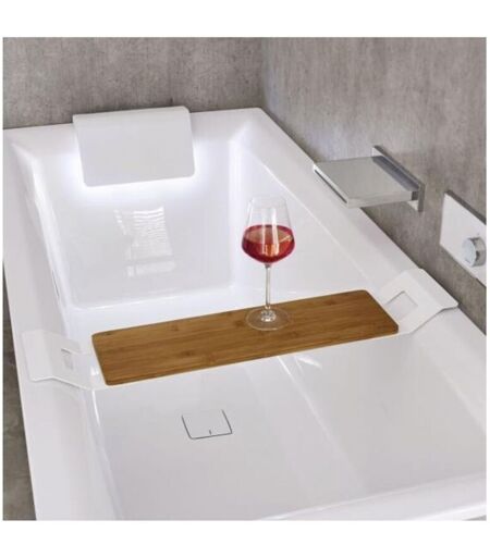 Plateau de baignoire en bambou RIHO Le complément idéal pour votre bain, Élégance et fonctionnalité se donnent rendez-vous dans votre salle de bain avec ce plateau en Bambou de RIHO. Prenez un bain relaxant, laissez-vous aller et savourez, par exemple, le plaisir d'un bon livre ; un verre de vin ou une coupe de champagne fera également très bonne figure sur cette tablette. Il s'adapte et se conjugue idéalement avec de nombreuses baignoires de RIHO . Longueur de la tablette: 51,5 cm Longueur totale : 71,2 - 76,4 cm Largeur : 16 cm Hauteur : 4,2 cm Epaisseur du bois : 1,2 cm Poids: 2,57 kg Poids supporté maximal : 5 kg Matière : acier blanc ou noir et bambou Ce plateau de baignoire est compatible pour les collections : STILL, MADRID, BURGOS, BARCELONA, MALAGA, BILBAO150, ADORE, DESIRE, INSPIRE, MODESTY, LAZY, Les options: - Finitions disponibles : acier blanc et bambou - acier noir et bambou - Dimensions disponibles: - standard 76,4 x16 x4,2 cm - XL 84,7 x16 x4,2 cm ...