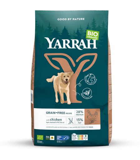 2kg Yarrah Bio sans céréales, poulet bio - Croquettes pour chien