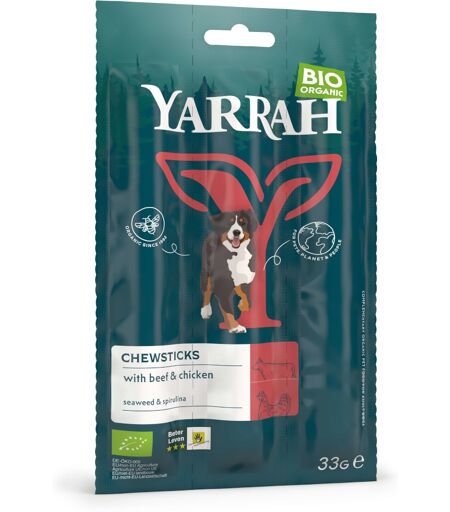 3x11g Bâtonnets à mâcher Yarrah Bio - Friandises pour chien