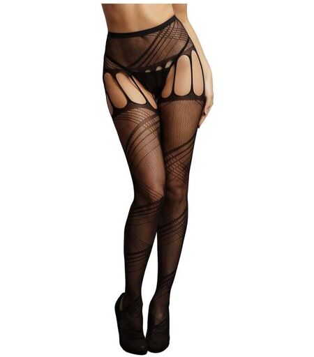 Le Désir Collant Porte-Jarretelles DES042 Résille & Rayures Croisées Noir
