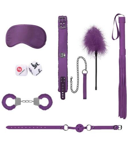 Le Kit Introduction au Bondage N°6 de Ouch! est exactement ce qu’il vous faut pour débuter la pratique du bondage et du BDSM soft dans votre couple ! Éveillez tous vos sens et créez des scénarios érotiques très excitants avec ce kit qui contient : * Un collier en cuir avec laisse en métal * Une paire de menottes en fourrure * Un plumeau de 28 cm de long * Un martinet * Un bâillon boule * Un masque en satin * Deux dés coquins Attachez votre partenaire avec les menottes et le collier, bandez ses yeux avec le masque et empêchez-le de parler avec le bâillon. Infligez-lui de douces punitions avec le martinet et le plumeau ! Les dés coquins vous permettront de laisser le hasard décider de la prochaine position à réaliser. Vivez des expériences uniques et laissez-vous aller à vos fantasmes avec ce kit parfait pour découvrir les jeux de soumission et de domination ! ...