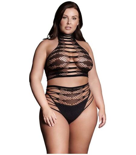 Je déchaîne vos passions mutuelles. Je suis votre ensemble 2 pièces Carpo noir GT de la marque Le Désir ! Composé d'un top et d'un string, je m'amuse à mettre à rude épreuve la retenue de votre partenaire avec ma transparence aguichante. Tout d'abord, mon crop top à col haut enveloppe votre poitrine d'une maille fine ornementée de motifs losanges qui laisse transparaître vos tétons de la manière la plus excitante qui soit. De plus, la partie supérieure de votre dos est entièrement découverte afin d'ajouter un brin de sensualité supplémentaire à mon design. Ensuite, je complète le haut de mon string taille haute de la même maille à motifs losanges qui révèle tout autant votre entrejambe que la naissance de vos fesses. Enfin, les lanières noires encadrent vos hanches et accordent une touche moderne à votre look. Composition : 92% Nylon, 8% Élasthanne. ...
