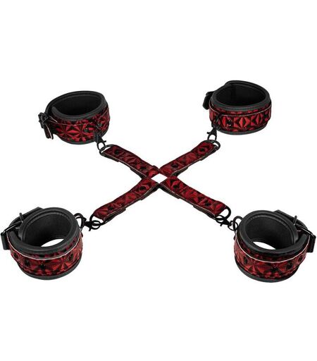 Ouch! présente sa collection Luxury, des accessoires BDSM déclinés en noir ou bordeaux avec des coutures aux motifs rappelant des diamants pour allier élégance et plaisir lors de vos jeux coquins ! Prenez entièrement le contrôle grâce aux Menottes Poignets & Chevilles Luxury de Ouch! Les deux paires de menottes sont reliées par 4 attaches ajustables pour contraindre votre partenaire à rester là où vous l'aurez décidé. Ces menottes en vinyle, faux cuir et néoprène sont particulièrement résistantes et vous permettront de passer des moments très coquins. De plus, elles sont ajustables à la taille du poignet grâce à 6 et 7 trous pour régler la longueur et disposent de fixations métalliques et raccordements par anneaux en D. Multipliez les positions et laissez libre cours à votre imagination tout en étant certain que votre partenaire ne bougera pas et que vos envies de jeux BDSM seront comblées ! Dimensions : * Menottes poignets Longueur : 36 cm Largeur : 5 cm 6 trous * Menottes chevilles Longueur : 39 cm Largeur : 5,5 cm 7 trous * Croix (Hogtie) Longueur : 27,2 cm ...