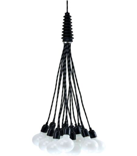Créez une belle ambiance dans votre intérieur avec ce lustre tendance. Son assemblage d'ampoules lui confère élégance et originalité. FICHE TECHNIQUE - Abat jour en verre. - Fonctionne avec alimentation sur secteur. - Ampoules non incluses. CARACTERISTIQUES TECHNIQUES - Dimensions : Diam. 50 x H. 60 cm. - Hauteur du câble : H. 30 cm. - Hauteur totale du lustre : L. 90 cm. - Type de culot : E27. - Puissance maximale : 25W. - Poids : 1,34 kg. ...