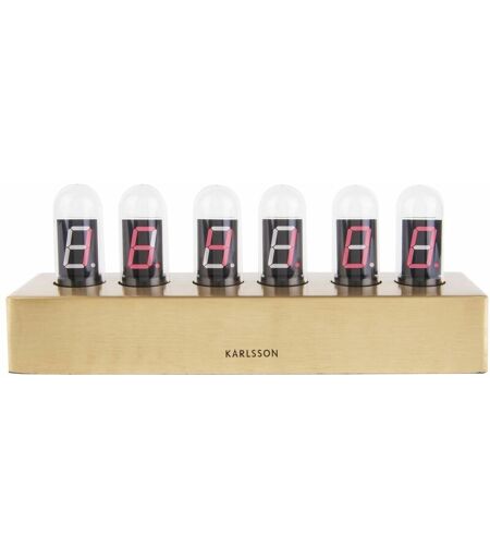 Lisez l'heure à la fois dans le passé et dans le futur avec cette horloge à poser au design insolite. Ses tubes à néon nous transportant dans les années 50 contrastent joliment avec sa base en métal pour un rendu tout droit sorti de science-fiction. Regardez l'heure deviendra rapidement un plaisir. FICHE TECHNIQUE - Base de l'horloge en métal. - Equipée de six tubes indiquant les heures, les minutes et les secondes. - Fonctionne sur secteur. CARACTERISTIQUES TECHNIQUES - Dimensions : L. 28 x l. 7,5 x H. 11 cm. - Puissance de l'adaptateur : 6-9V. - Poids : 0,91 kg. ...