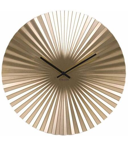 Aspect Coloris Doré Matériau principal Métal Dimensions Diamètre (en cm) 40,00 Profondeur (en cm) 5,50 Autres caractéristiques Fixations murales incluses Oui Informations complémentaires Fonctionne avec 1 pile AA non fournie Poids (en kg) 1,00 Horloge design en métal Sensu ...