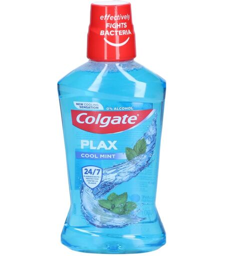 Bain de bouche Colgate® Plax Cool Mint Le bain de bouche Colgate Plax prolonge l'effet du brossage des dents jusqu'à 12 heures. Il combat la formation de la plaque dentaire et agit ainsi de manière préventive contre les problèmes de caries, de tartre et de gencives. Les bains de bouche constituent un complément utile au nettoyage mécanique des dents avec la brosse à dents. Le rinçage buccal - surtout après les repas - permet d'éliminer les résidus alimentaires de la cavité buccale et de mettre à la disposition des dents du fluor ou des substances actives anti-plaque.Les rinçages buccaux permettent d'éliminer la plaque dentaire Le bain de bouche Colgate Plax prolonge l'effet du brossage des dents jusqu'à 12 heures. Il combat la formation de la plaque dentaire et agit ainsi de manière préventive contre les problèmes de caries, de tartre et de gencives. Combat jusqu'à 99% des bactéries Ne contient pas d'alcool Fraîche jusqu'à 10 fois plus longtemps que le brossage des dents seul Testé cliniquement par des dentistes Avec du fluor pour la prévention des caries Le bain de bouche Colgate Plax Cool Mint a une action antibactérienne et élimine jusqu'à 99% des bactéries dans la bouche. Utilisé quotidiennement, il assure une protection contre la plaque dentaire 24h/24 et 7j/7. Utiliser le bain de bouche Colgate Plax deux fois par jour après le brossage des dents. Remplissez le bouchon jusqu'au repère (20 ml). Rincez votre bouche pendant environ 30 secondes, puis gargarisez-vous et recrachez. Ne pas avaler. Pour les adultes et les enfants à partir de 6 ans. Ne pas avaler. Tenir hors de portée des enfants. Rincer le capuchon après utilisation. Protéger de la lumière et de la chaleur. ...