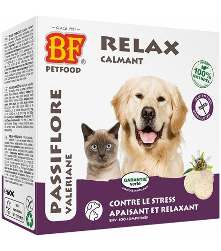Ces comprimés savoureux et 100% naturels aux extraits de plantes fraîches réguleront le métabolisme de l'animal, favorisant un effet calmant et apaisant. Comprimés friandises BIOFOOD relaxants Effet calmant et apaisant, lutte de façon naturelle contre l'anxiété et le stress 100 % naturel Bon pour la peau et le pelage (y compris la perte de poils). Pour toutes les races de chiens et de chats. Boîte de 60gr / soit 100 comprimés Contient des acides aminés, des vitamines (A, B, D et E) , des minéraux, de valériane, de passiflore et un mélange d'herbes. ...