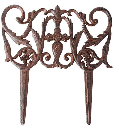 ESTHÉTIQUE : La Bordurette en fonte Elegance est une pièce unique qui ajoute une touche d'élégance à n'importe quel jardin. Sa conception en fonte offre un style intemporel et authentique, faisant de cette bordure un choix esthétique pour tous les espaces extérieurs. MATIÈRE : Fabriquée en fonte, cette bordurette présente une finition soignée, témoignant de sa solidité et de sa qualité de fabrication. Ce matériau durable garantit une excellente résistance aux intempéries et une longévité remarquable, vous permettant de profiter de son esthétique pendant de nombreuses années. DIMENSIONS : L 29,5 x H 31,3 cm. , LES + PRODUIT : La Bordurette en fonte Elegance est livrée prête à être utilisée, vous permettant de l'installer facilement dans votre jardin. Sa conception solide en fonte assure une grande stabilité, tandis que son design élégant en fait un atout décoratif pour tout jardin. MULTIFONCTIONNELLE : Que vous souhaitiez délimiter une allée de jardin, un potager ou un parterre de fleurs, cette bordurette est la solution idéale. Sa fonction de retenue de terre vous permet de créer des espaces délimités et organisés dans votre jardin, en lui donnant une apparence soignée et structurée. Disposez la Bordurette en fonte Elegance comme bon vous semble pour mettre votre jardin en valeur. ...