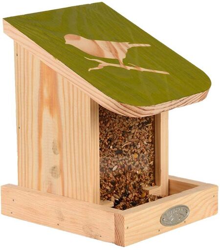 Aspect : Coloris : Vert Matériau principal : Bois de pin Matériaux secondaires : Verre acrylique Dimensions : Hauteur (en cm) : 20,20 Longueur (en cm) : 14,80 Profondeur (en cm) : 16,80 Autres caractéristiques : Informations complémentaires : Facile à remplir en soulevant le toit , Le bord de sûreté sert de perchoir , Mécanisme de pliage sur le côté , Coupe-trou de serrure , Bois certifié FSC , Fabriqué en Europe Poids (en kg) : 0,75 Mangeoire silo en bois Pochoir ...