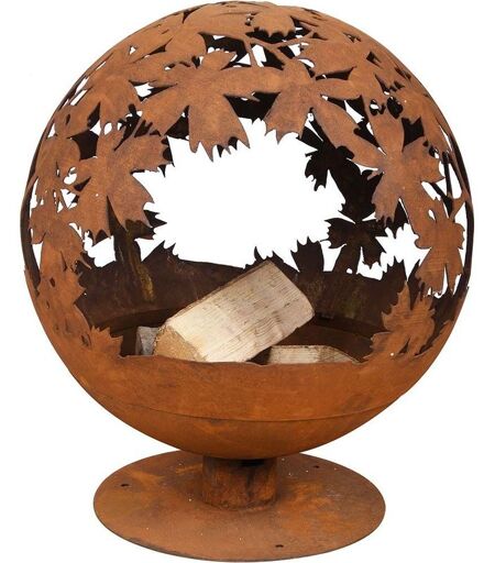Esschert Design - Brasero rond en métal rouillé Feuilles