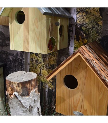 Aspect : Matériau principal : Bois de sapin Dimensions : Hauteur (en cm) : 29 Longueur (en cm) : 25,20 Profondeur (en cm) : 26 Autres caractéristiques : Poids (en kg) : 1,28 Nichoir pour écureuil avec toît en écorce ...